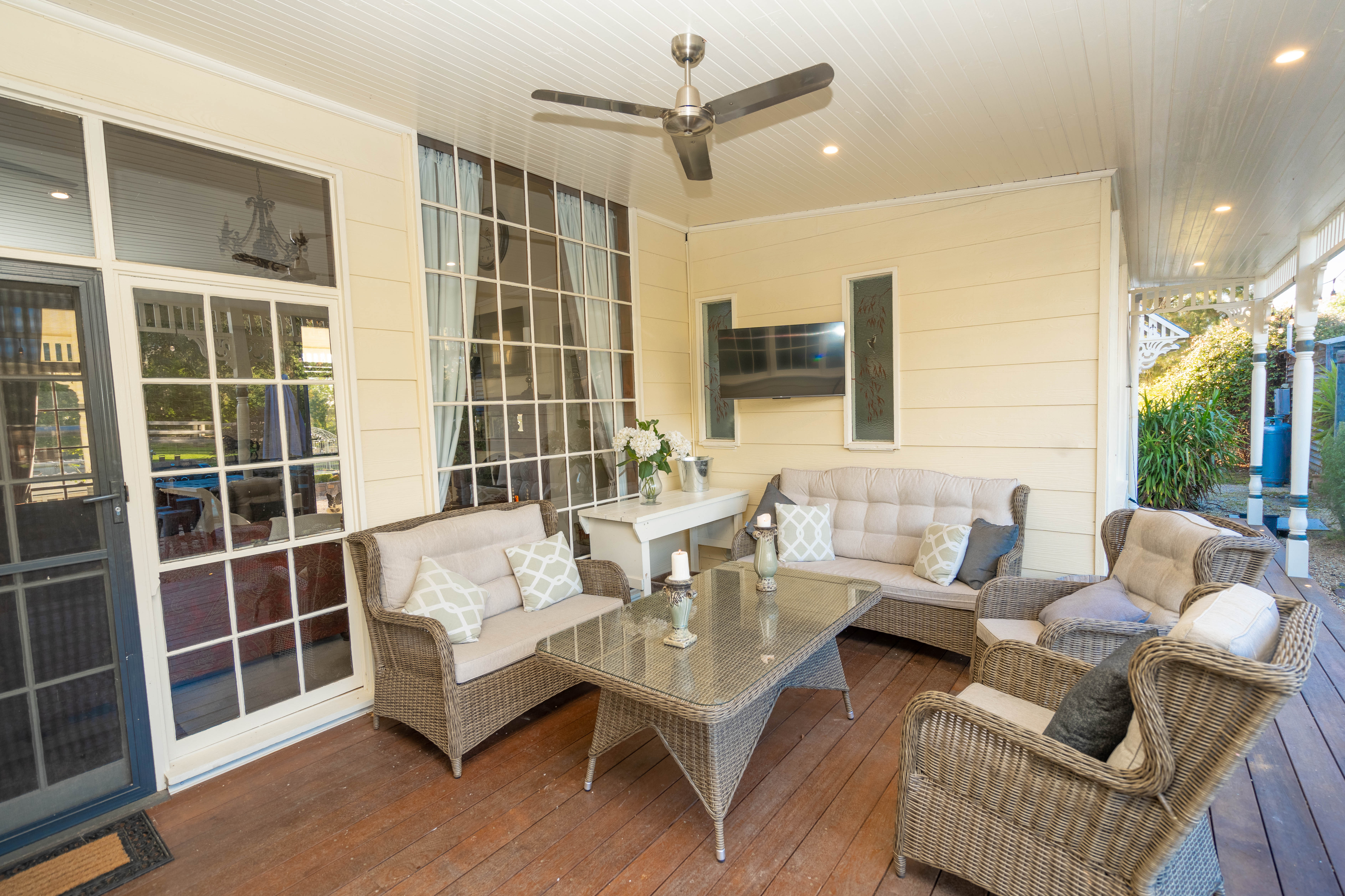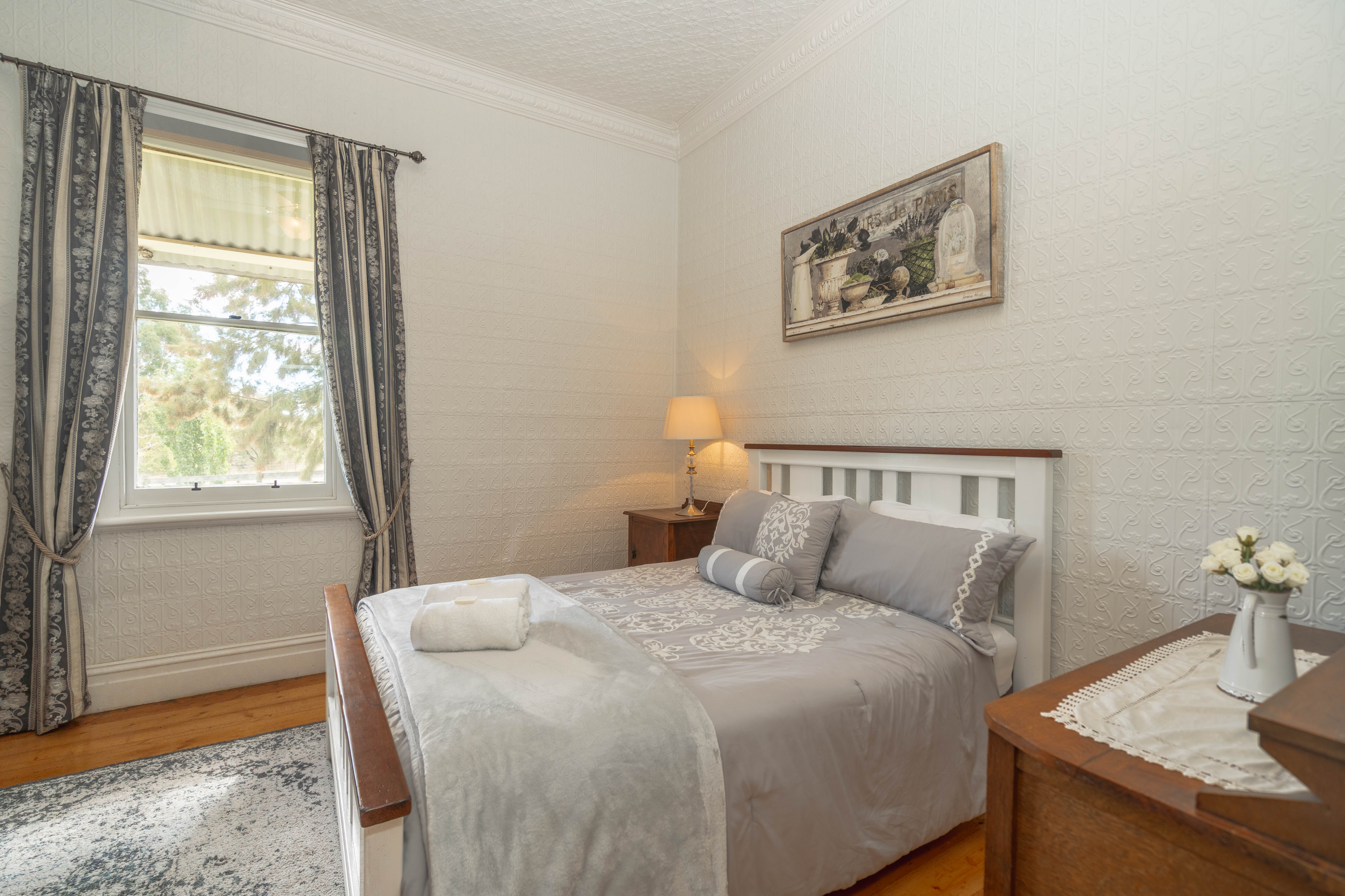 Featuring it's original pressed tin walls and high ceilings, baltic pine floors and slow combustion wood heaters. The Homestead is a warm and cosy getaway for your family and friends. The homestead also features a large lawn area with an outside alfresco, BBQ, table and chairs.